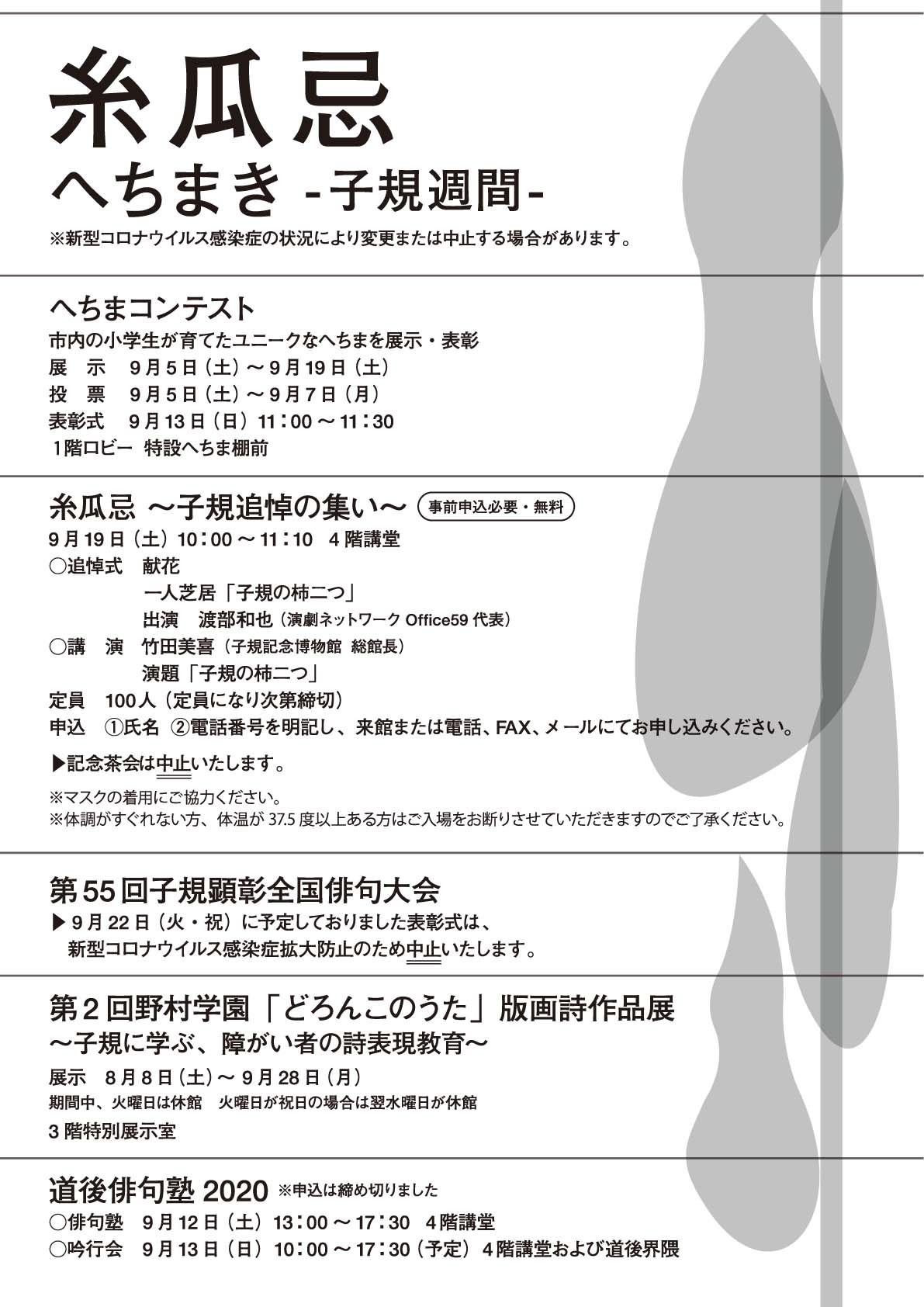 ※9月19日(土)糸瓜忌当日は常設展示室を無料開放します。
