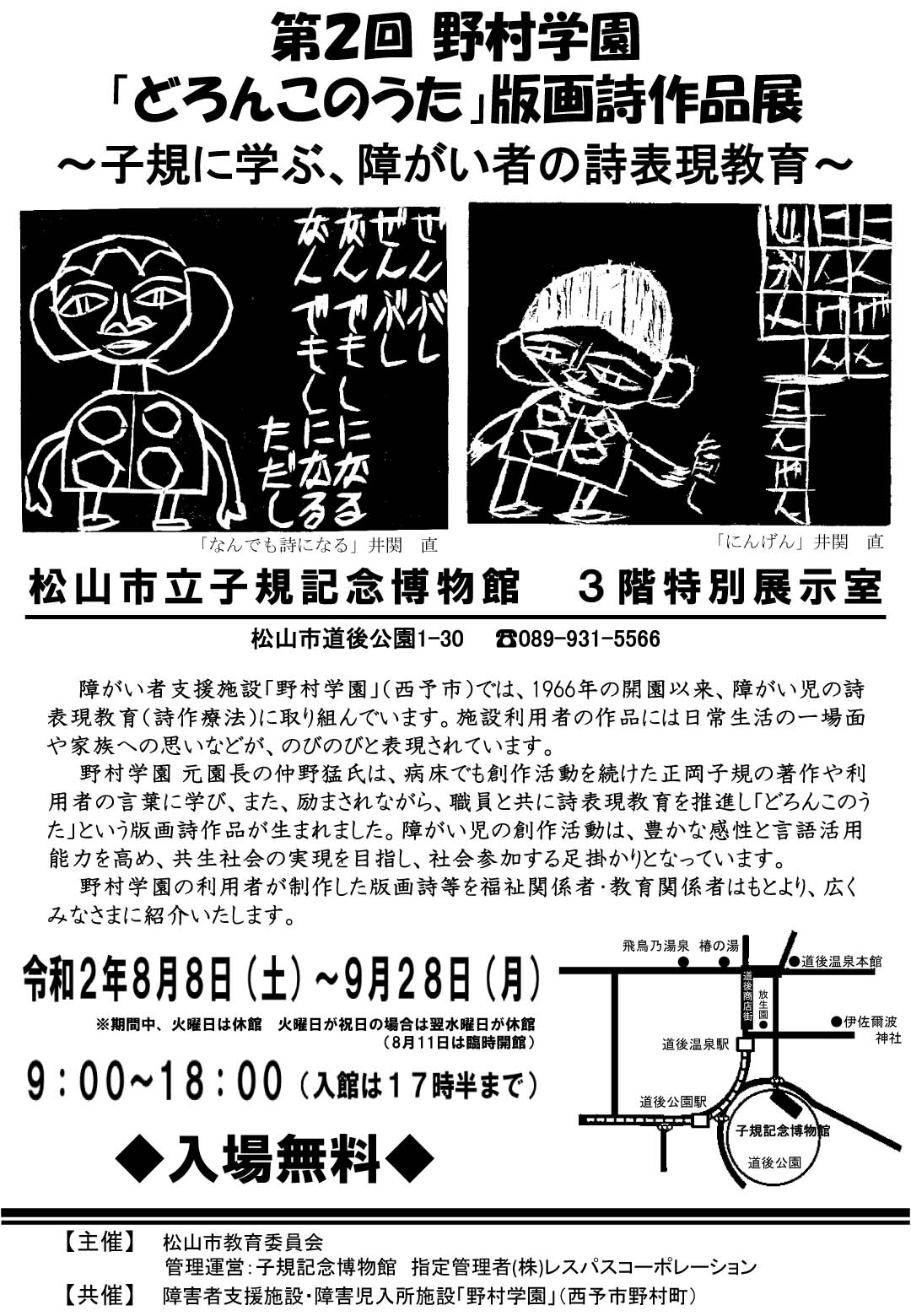 第2回野村学園「どろんこのうた」版画詩作品展~子規に学ぶ、障がい者の詩表現教育~を開催します。