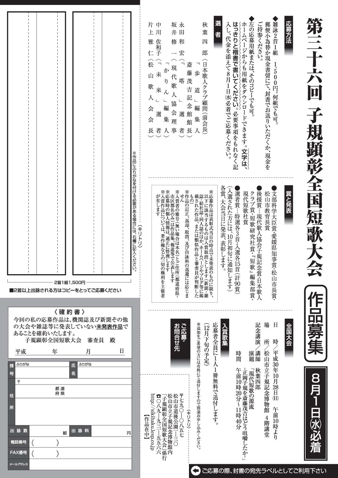 第36回子規顕彰全国短歌大会 作品募集