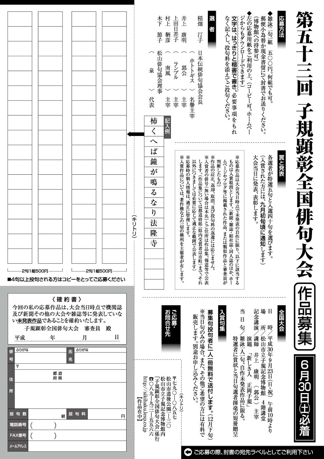 ◆応募方法/雑詠2句1組500円 何組でも可。