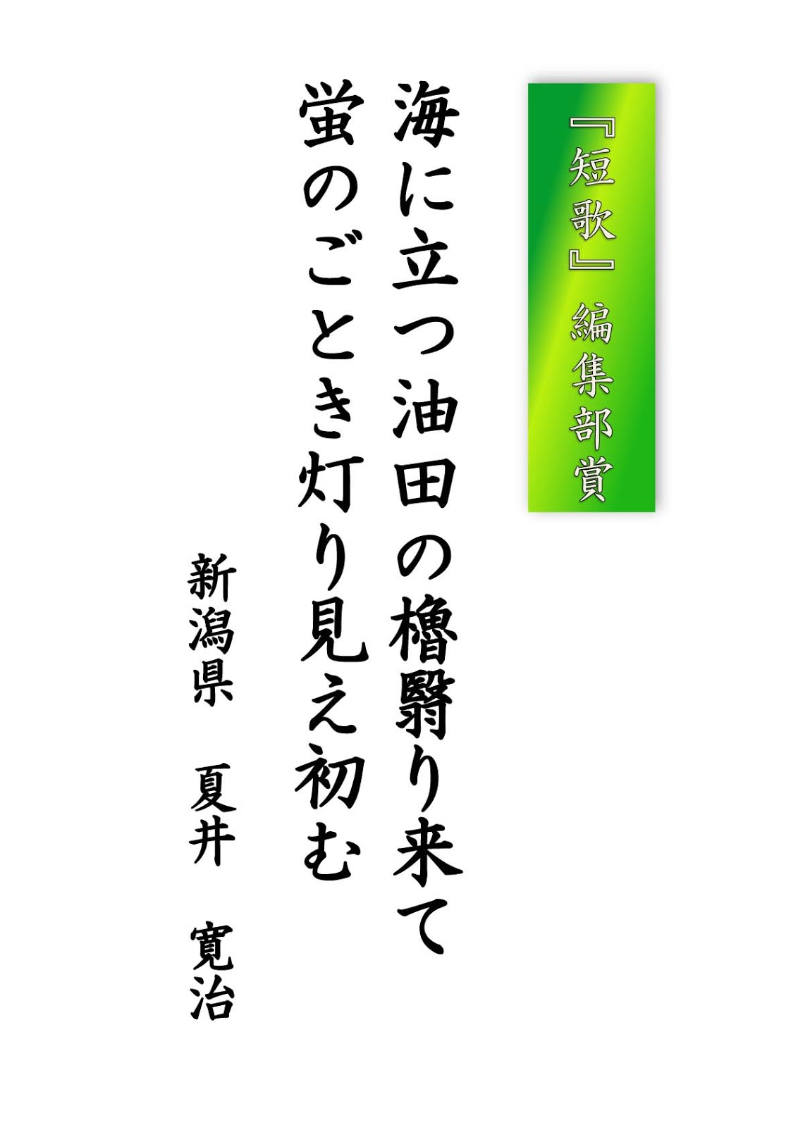 2017.10.31 子規顕彰全国短歌大会 第35回子規顕彰全国短歌大会 上位賞紹介 受賞作品を紹介します。 ※印は、複数の選者の先生が選ばれた作品です。 お知らせ一覧へ戻る アーカイブ 月を選択 2025年10月 2025年9月 2025年7月 2025年6月 2025年5月 2025年4月 2025年3月 2024年12月 2024年11月 2024年10月 2024年9月 2024年8月 2024年7月 2024年6月 2024年5月 2024年4月 2024年3月 2024年2月 2024年1月 2023年12月 2023年11月 2023年10月 2023年9月 2023年8月 2023年7月 2023年6月 2023年5月 2023年4月 2023年3月 2023年2月 2022年12月 2022年11月 2022年10月 2022年9月 2022年8月 2022年7月 2022年6月 2022年5月 2022年4月 2022年3月 2022年2月 2022年1月 2021年11月 2021年10月 2021年9月 2021年7月 2021年6月 2021年5月 2021年4月 2021年3月 2020年11月 2020年10月 2020年9月 2020年8月 2020年7月 2020年5月 2020年4月 2020年3月 2020年2月 2020年1月 2019年12月 2019年11月 2019年10月 2019年9月 2019年8月 2019年7月 2019年5月 2019年4月 2019年3月 2019年2月 2019年1月 2018年11月 2018年9月 2018年8月 2018年7月 2018年6月 2018年5月 2018年4月 2018年3月 2018年2月 2018年1月 2017年11月 2017年10月 2017年9月 2017年8月 2017年7月 2017年5月 2017年4月 2017年2月 2017年1月 2016年12月 2016年11月 2016年10月 2016年9月 2016年8月 2016年4月 2016年2月 2016年1月 2015年11月 2015年10月 2015年9月 2015年8月 2015年6月 2015年5月 2015年4月 2015年1月 2014年12月 2014年6月 2014年5月 2014年4月 2014年3月 2014年1月 2013年11月 2013年8月 2013年6月 2013年5月 2013年3月 2013年1月 2012年12月 2012年11月 2012年10月 2012年9月 2012年8月 2012年4月 2012年2月 2011年11月 2011年10月 2011年9月 2011年8月 カテゴリー お知らせ 事業レポート 募集事業イベント ジュニア養成講座・研究講座 はがき歌全国コンテスト 主なご講演(子規塾など) 子規誕生祭―のぼさんとあそぼ秋祭り― 子規顕彰全国俳句大会 子規顕彰全国短歌大会 子規顕彰松山市小中高校生俳句大会 糸瓜忌・へちまコンテスト 自主事業(ツアー企画・特別企画など)