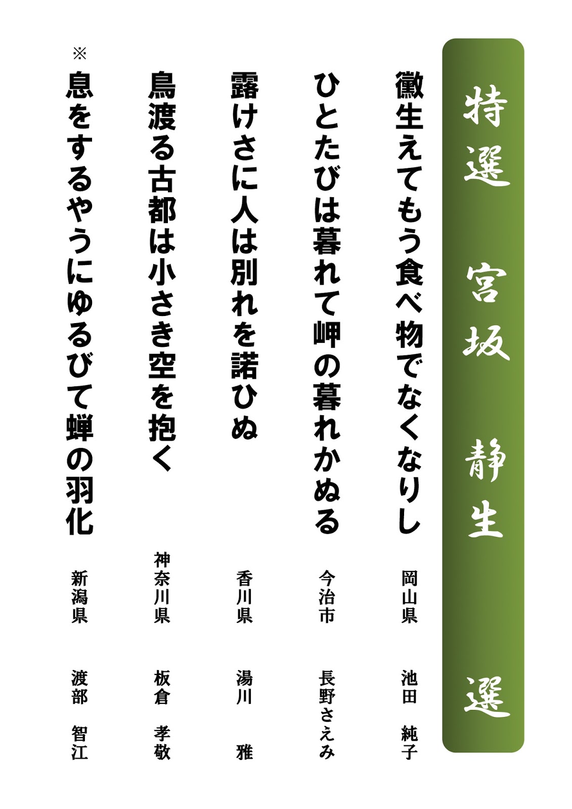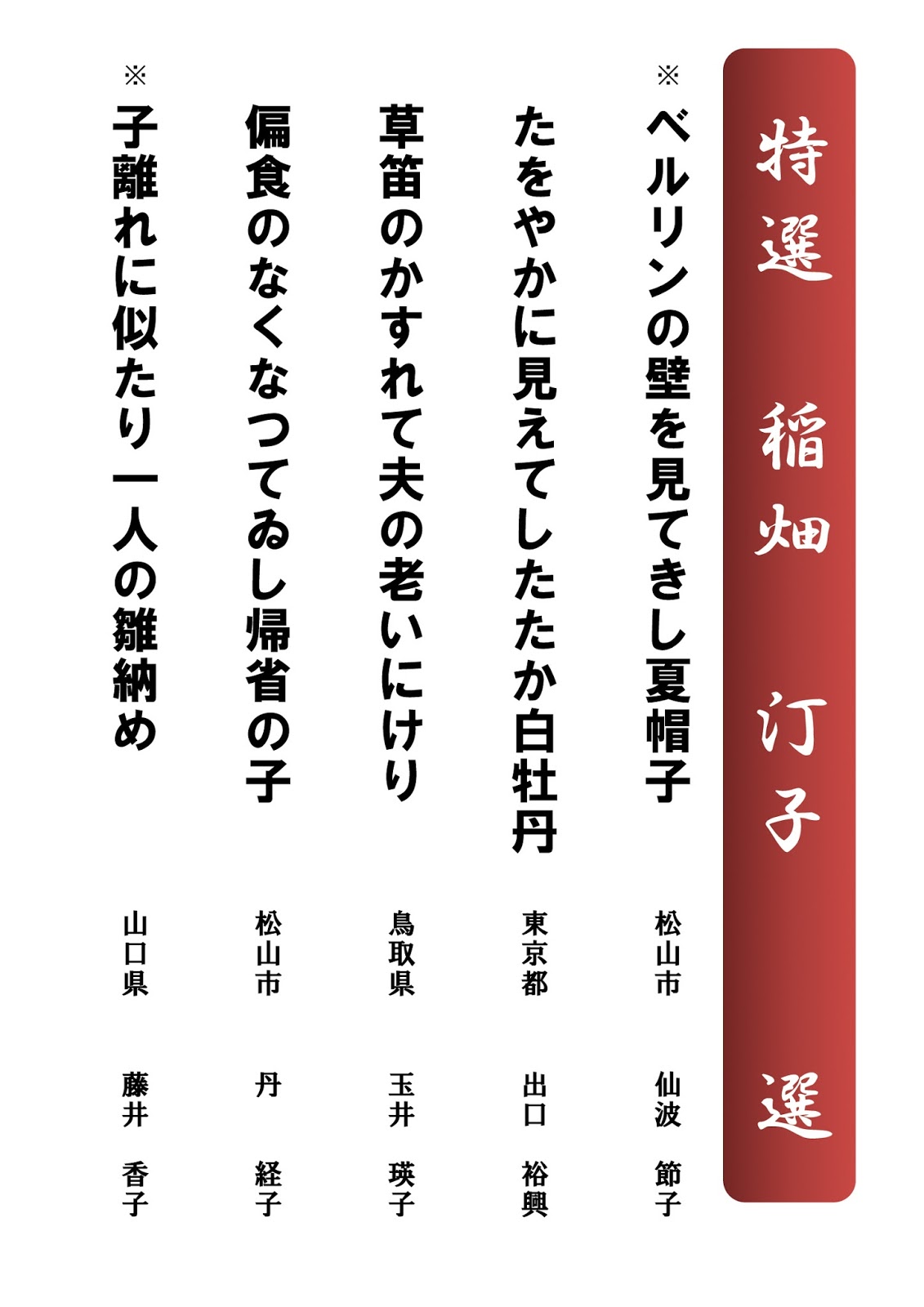 ※印を付しているものは、複数の選者の先生が選ばれた句です。
