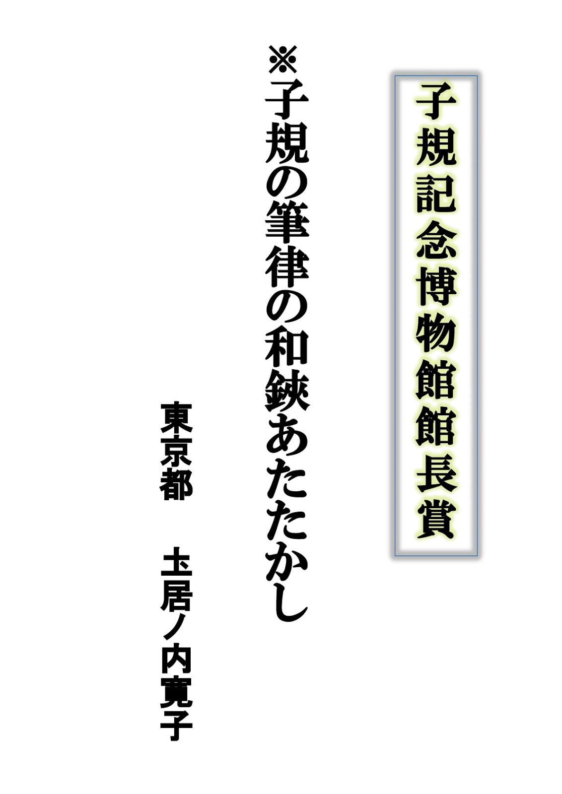 子規・漱石・極堂 生誕150年を記念して設けた上位賞と、各選者の先生方が選をされました特選作品をご覧下さい。