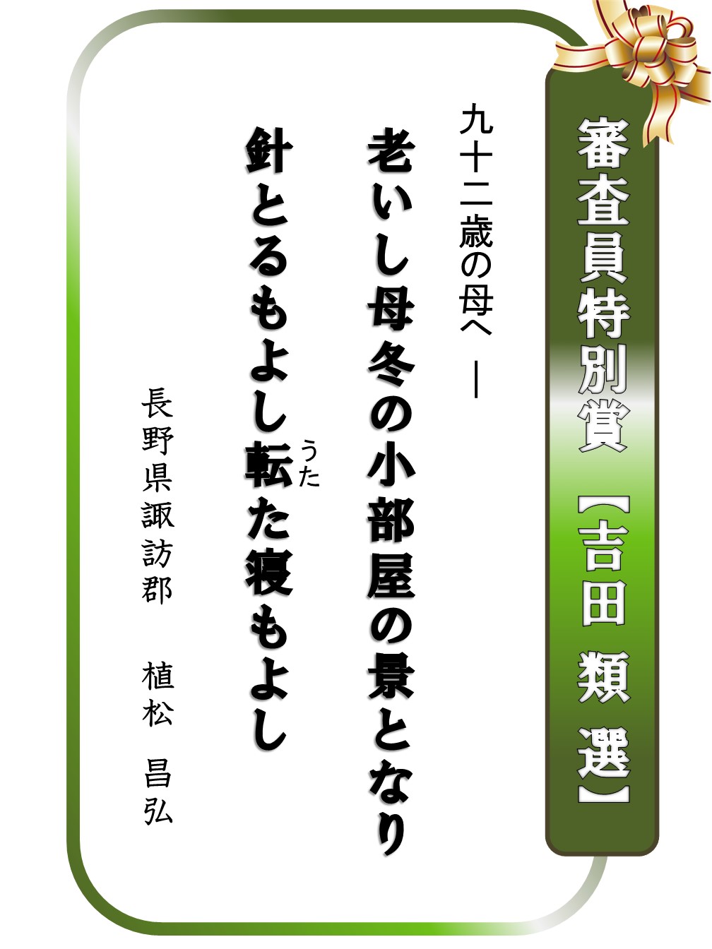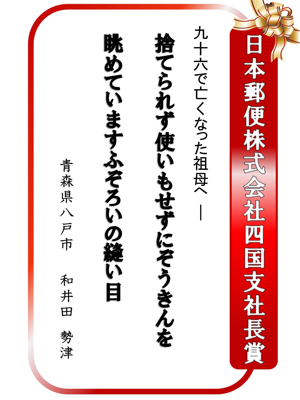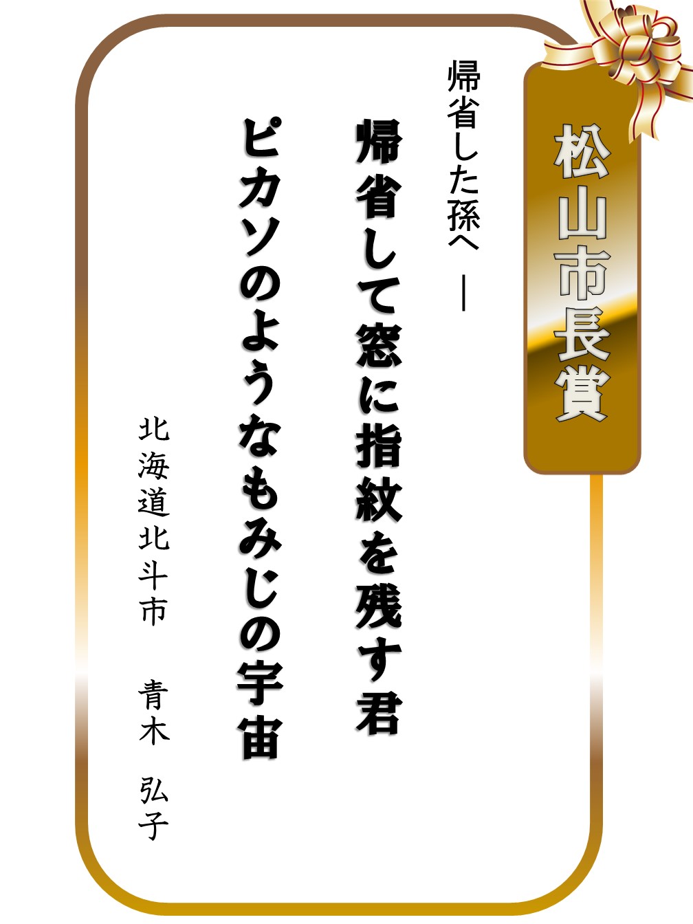 2017.04.01 はがき歌全国コンテスト 第22回はがき歌全国コンテスト上位賞紹介 上位賞に選ばれた作品を紹介します。 お知らせ一覧へ戻る アーカイブ 月を選択 2026年2月 2026年1月 2025年12月 2025年11月 2025年10月 2025年9月 2025年7月 2025年6月 2025年5月 2025年4月 2025年3月 2024年12月 2024年11月 2024年10月 2024年9月 2024年8月 2024年7月 2024年6月 2024年5月 2024年4月 2024年3月 2024年2月 2024年1月 2023年12月 2023年11月 2023年10月 2023年9月 2023年8月 2023年7月 2023年6月 2023年5月 2023年4月 2023年3月 2023年2月 2022年12月 2022年11月 2022年10月 2022年9月 2022年8月 2022年7月 2022年6月 2022年5月 2022年4月 2022年3月 2022年2月 2022年1月 2021年11月 2021年10月 2021年9月 2021年7月 2021年6月 2021年5月 2021年4月 2021年3月 2020年11月 2020年10月 2020年9月 2020年8月 2020年7月 2020年5月 2020年4月 2020年3月 2020年2月 2020年1月 2019年12月 2019年11月 2019年10月 2019年9月 2019年8月 2019年7月 2019年5月 2019年4月 2019年3月 2019年2月 2019年1月 2018年11月 2018年9月 2018年8月 2018年7月 2018年6月 2018年5月 2018年4月 2018年3月 2018年2月 2018年1月 2017年11月 2017年10月 2017年9月 2017年8月 2017年7月 2017年5月 2017年4月 2017年2月 2017年1月 2016年12月 2016年11月 2016年10月 2016年9月 2016年8月 2016年4月 2016年2月 2016年1月 2015年11月 2015年10月 2015年9月 2015年8月 2015年6月 2015年5月 2015年4月 2015年1月 2014年12月 2014年6月 2014年5月 2014年4月 2014年3月 2014年1月 2013年11月 2013年8月 2013年6月 2013年5月 2013年3月 2013年1月 2012年12月 2012年11月 2012年10月 2012年9月 2012年8月 2012年4月 2012年2月 2011年11月 2011年10月 2011年9月 2011年8月 カテゴリー お知らせ 事業レポート 募集事業イベント ジュニア養成講座・研究講座 はがき歌全国コンテスト 主なご講演(子規塾など) 子規誕生祭―のぼさんとあそぼ秋祭り― 子規顕彰全国俳句大会 子規顕彰全国短歌大会 子規顕彰松山市小中高校生俳句大会 糸瓜忌・へちまコンテスト 自主事業(ツアー企画・特別企画など)