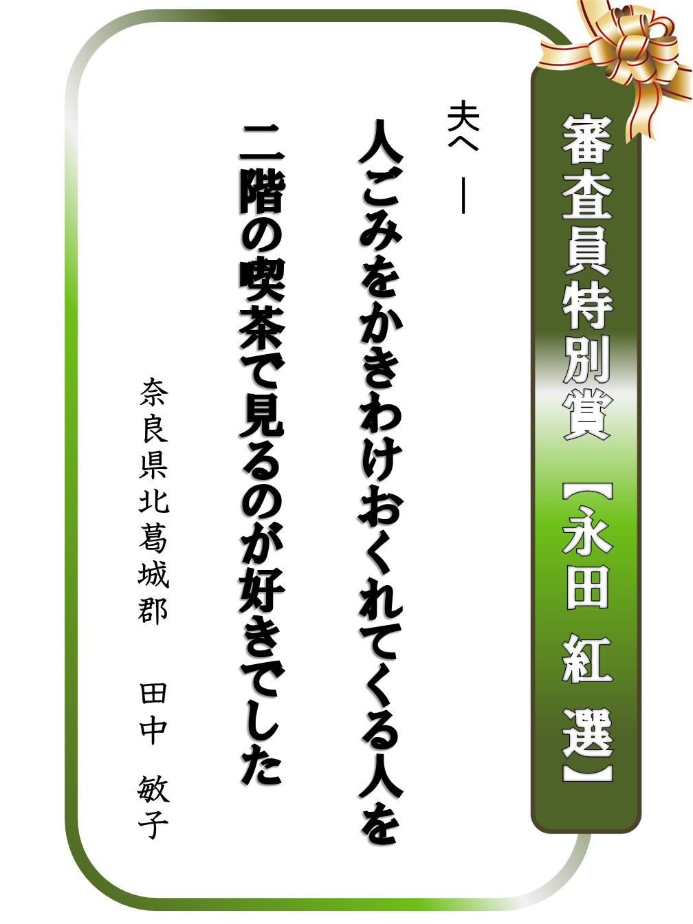 2017.04.01 はがき歌全国コンテスト 第22回はがき歌全国コンテスト上位賞紹介 上位賞に選ばれた作品を紹介します。 お知らせ一覧へ戻る アーカイブ 月を選択 2025年12月 2025年11月 2025年10月 2025年9月 2025年7月 2025年6月 2025年5月 2025年4月 2025年3月 2024年12月 2024年11月 2024年10月 2024年9月 2024年8月 2024年7月 2024年6月 2024年5月 2024年4月 2024年3月 2024年2月 2024年1月 2023年12月 2023年11月 2023年10月 2023年9月 2023年8月 2023年7月 2023年6月 2023年5月 2023年4月 2023年3月 2023年2月 2022年12月 2022年11月 2022年10月 2022年9月 2022年8月 2022年7月 2022年6月 2022年5月 2022年4月 2022年3月 2022年2月 2022年1月 2021年11月 2021年10月 2021年9月 2021年7月 2021年6月 2021年5月 2021年4月 2021年3月 2020年11月 2020年10月 2020年9月 2020年8月 2020年7月 2020年5月 2020年4月 2020年3月 2020年2月 2020年1月 2019年12月 2019年11月 2019年10月 2019年9月 2019年8月 2019年7月 2019年5月 2019年4月 2019年3月 2019年2月 2019年1月 2018年11月 2018年9月 2018年8月 2018年7月 2018年6月 2018年5月 2018年4月 2018年3月 2018年2月 2018年1月 2017年11月 2017年10月 2017年9月 2017年8月 2017年7月 2017年5月 2017年4月 2017年2月 2017年1月 2016年12月 2016年11月 2016年10月 2016年9月 2016年8月 2016年4月 2016年2月 2016年1月 2015年11月 2015年10月 2015年9月 2015年8月 2015年6月 2015年5月 2015年4月 2015年1月 2014年12月 2014年6月 2014年5月 2014年4月 2014年3月 2014年1月 2013年11月 2013年8月 2013年6月 2013年5月 2013年3月 2013年1月 2012年12月 2012年11月 2012年10月 2012年9月 2012年8月 2012年4月 2012年2月 2011年11月 2011年10月 2011年9月 2011年8月 カテゴリー お知らせ 事業レポート 募集事業イベント ジュニア養成講座・研究講座 はがき歌全国コンテスト 主なご講演(子規塾など) 子規誕生祭―のぼさんとあそぼ秋祭り― 子規顕彰全国俳句大会 子規顕彰全国短歌大会 子規顕彰松山市小中高校生俳句大会 糸瓜忌・へちまコンテスト 自主事業(ツアー企画・特別企画など)
