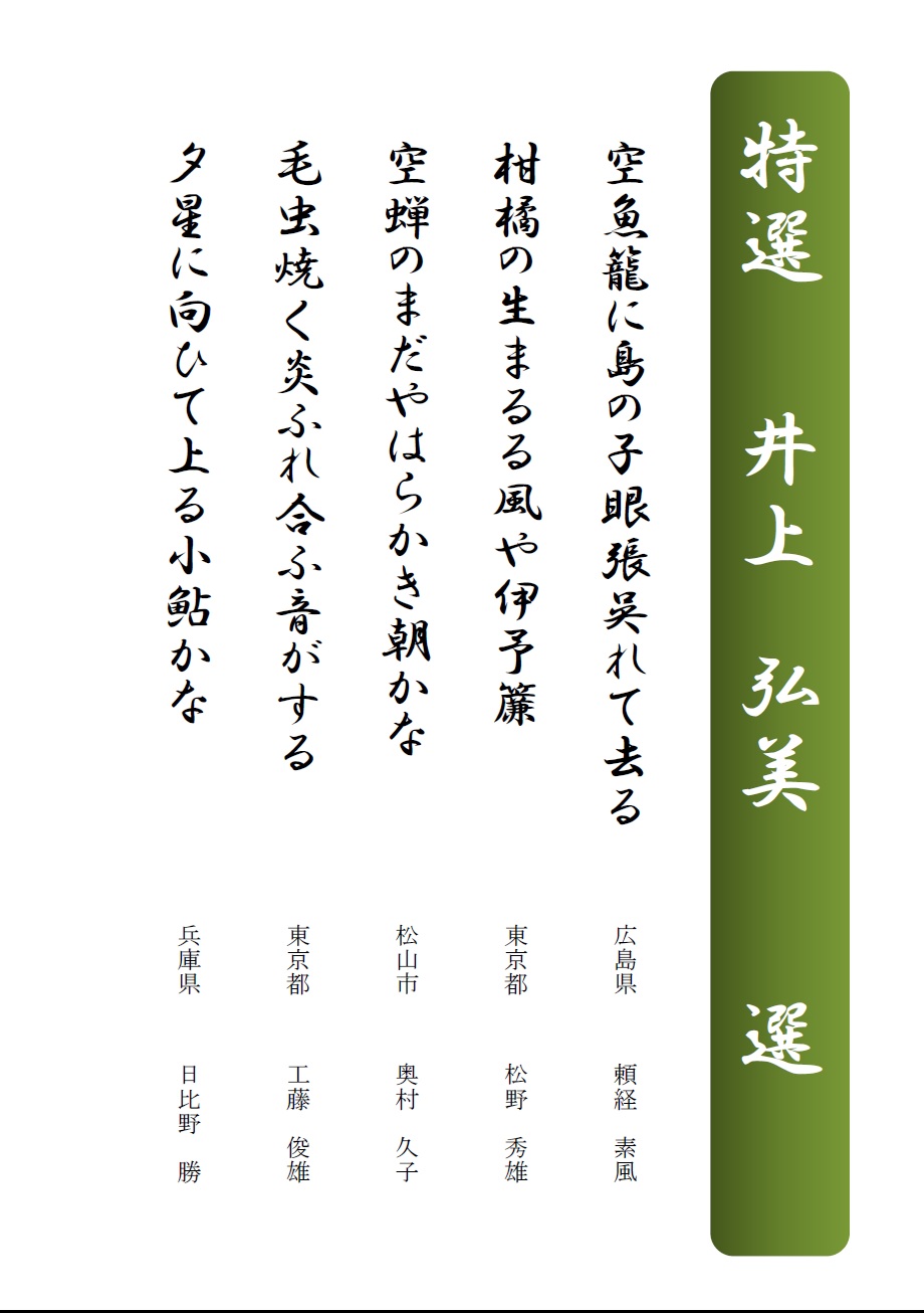 募集句で特選となりました皆さまの作品をご覧下さい。