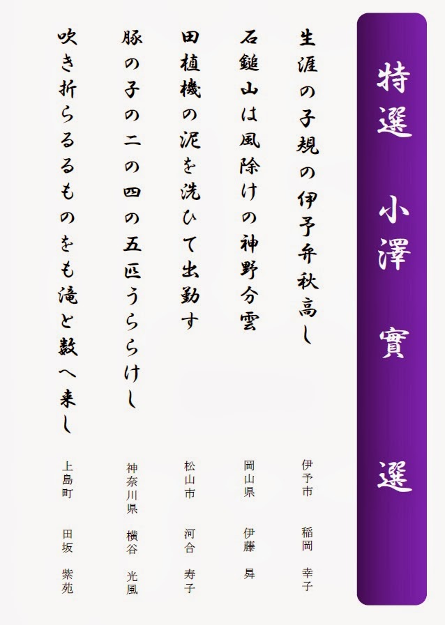 ◆後   援/松山俳句協会 愛媛新聞社 NHK松山放送局 南海放送 テレビ愛媛 あいテレビ 愛媛朝日テレビ FM愛媛 愛媛CATV