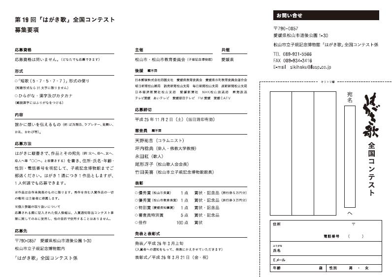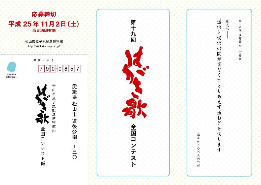 平成25年度_第19回「はがき歌」全国コンテスト【 締切;11月2日 】