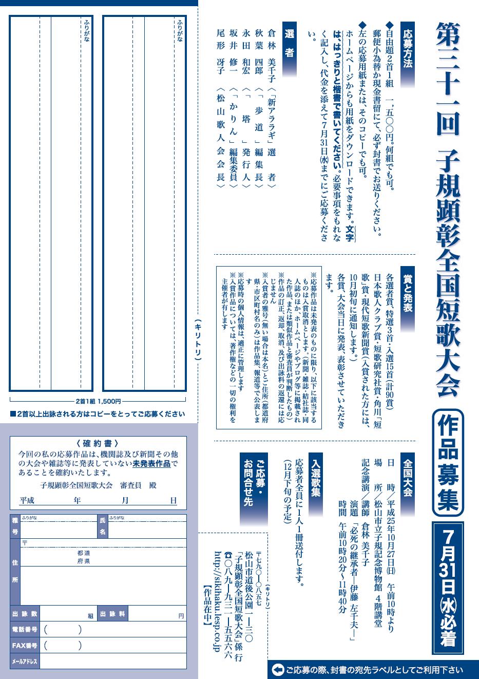平成25年度_第31回子規顕彰全国短歌大会_【今年度の募集は締め切りました】