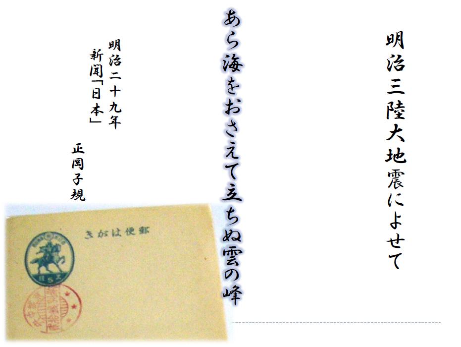 ちなみに、明治29年(1896年)の「明治三陸大地震」に際して、子規は新聞「日本」に被災地の