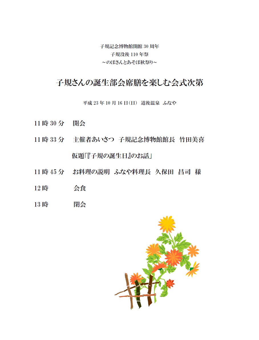 子規誕生祭_「子規さんの誕生日会席膳を楽しむ会」≪ ご報告 ≫_平成23年10月16日