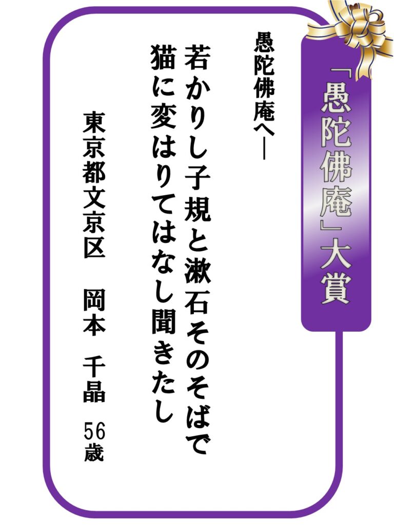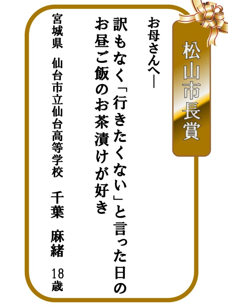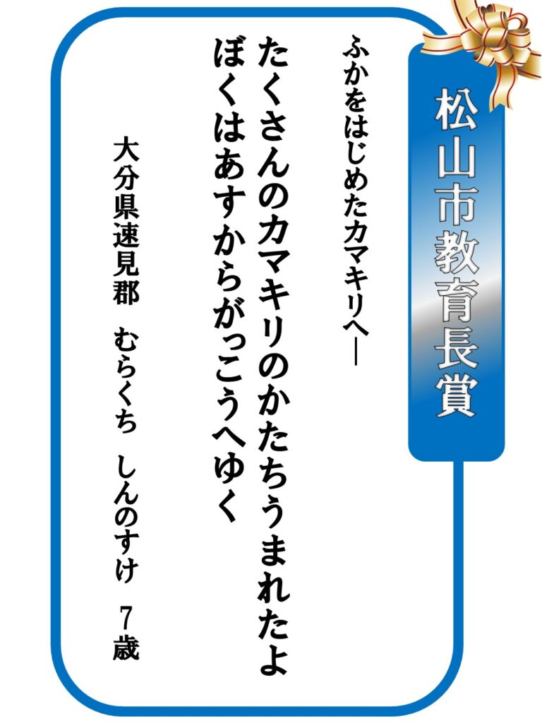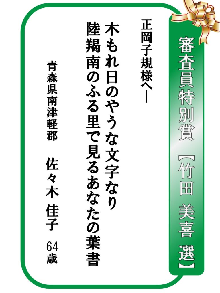 2026.03.22 募集事業イベント 第31回「はがき歌」全国コンテスト【上位賞】発表 第31回「はがき歌」全国コンテストの上位賞を発表します。 お知らせ一覧へ戻る アーカイブ 月を選択 2026年3月 2026年2月 2026年1月 2025年12月 2025年11月 2025年10月 2025年9月 2025年7月 2025年6月 2025年5月 2025年4月 2025年3月 2024年12月 2024年11月 2024年10月 2024年9月 2024年8月 2024年7月 2024年6月 2024年5月 2024年4月 2024年3月 2024年2月 2024年1月 2023年12月 2023年11月 2023年10月 2023年9月 2023年8月 2023年7月 2023年6月 2023年5月 2023年4月 2023年3月 2023年2月 2022年12月 2022年11月 2022年10月 2022年9月 2022年8月 2022年7月 2022年6月 2022年5月 2022年4月 2022年3月 2022年2月 2022年1月 2021年11月 2021年10月 2021年9月 2021年7月 2021年6月 2021年5月 2021年4月 2021年3月 2020年11月 2020年10月 2020年9月 2020年8月 2020年7月 2020年5月 2020年4月 2020年3月 2020年2月 2020年1月 2019年12月 2019年11月 2019年10月 2019年9月 2019年8月 2019年7月 2019年5月 2019年4月 2019年3月 2019年2月 2019年1月 2018年11月 2018年9月 2018年8月 2018年7月 2018年6月 2018年5月 2018年4月 2018年3月 2018年2月 2018年1月 2017年11月 2017年10月 2017年9月 2017年8月 2017年7月 2017年5月 2017年4月 2017年2月 2017年1月 2016年12月 2016年11月 2016年10月 2016年9月 2016年8月 2016年4月 2016年2月 2016年1月 2015年11月 2015年10月 2015年9月 2015年8月 2015年6月 2015年5月 2015年4月 2015年1月 2014年12月 2014年6月 2014年5月 2014年4月 2014年3月 2014年1月 2013年11月 2013年8月 2013年6月 2013年5月 2013年3月 2013年1月 2012年12月 2012年11月 2012年10月 2012年9月 2012年8月 2012年4月 2012年2月 2011年11月 2011年10月 2011年9月 2011年8月 カテゴリー お知らせ 事業レポート 募集事業イベント ジュニア養成講座・研究講座 はがき歌全国コンテスト 主なご講演(子規塾など) 子規誕生祭―のぼさんとあそぼ秋祭り― 子規顕彰全国俳句大会 子規顕彰全国短歌大会 子規顕彰松山市小中高校生俳句大会 糸瓜忌・へちまコンテスト 自主事業(ツアー企画・特別企画など)