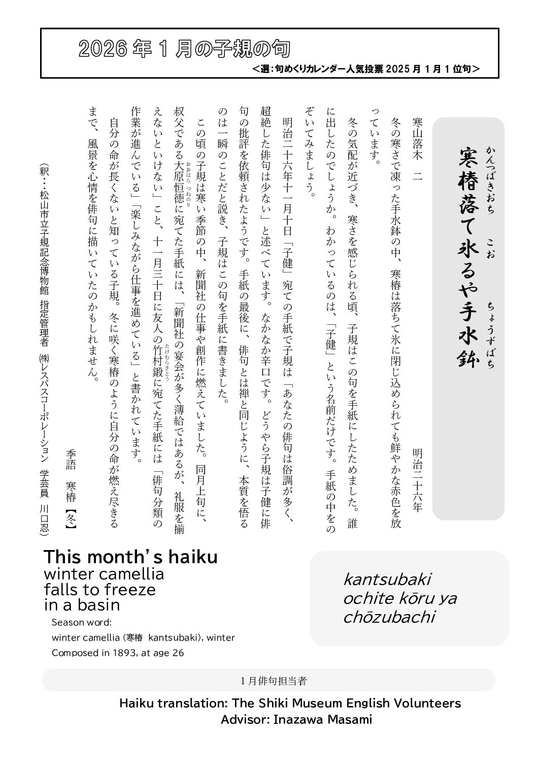 句めくりカレンダー人気投票2025年1月1位句